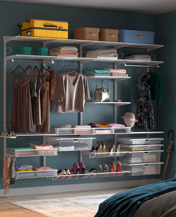 Он позволяет разделить полку-корзину на отдельные секции, что делает хранение одежды, аксессуаров и мелких предметов более структурированным и аккуратным.