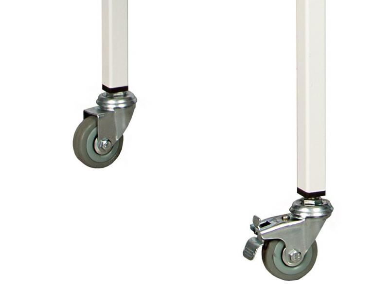 - столик процедурный имеет 4 колеса из немаркой серой резины D= 50 мм, два из которых снабжены тормозом
